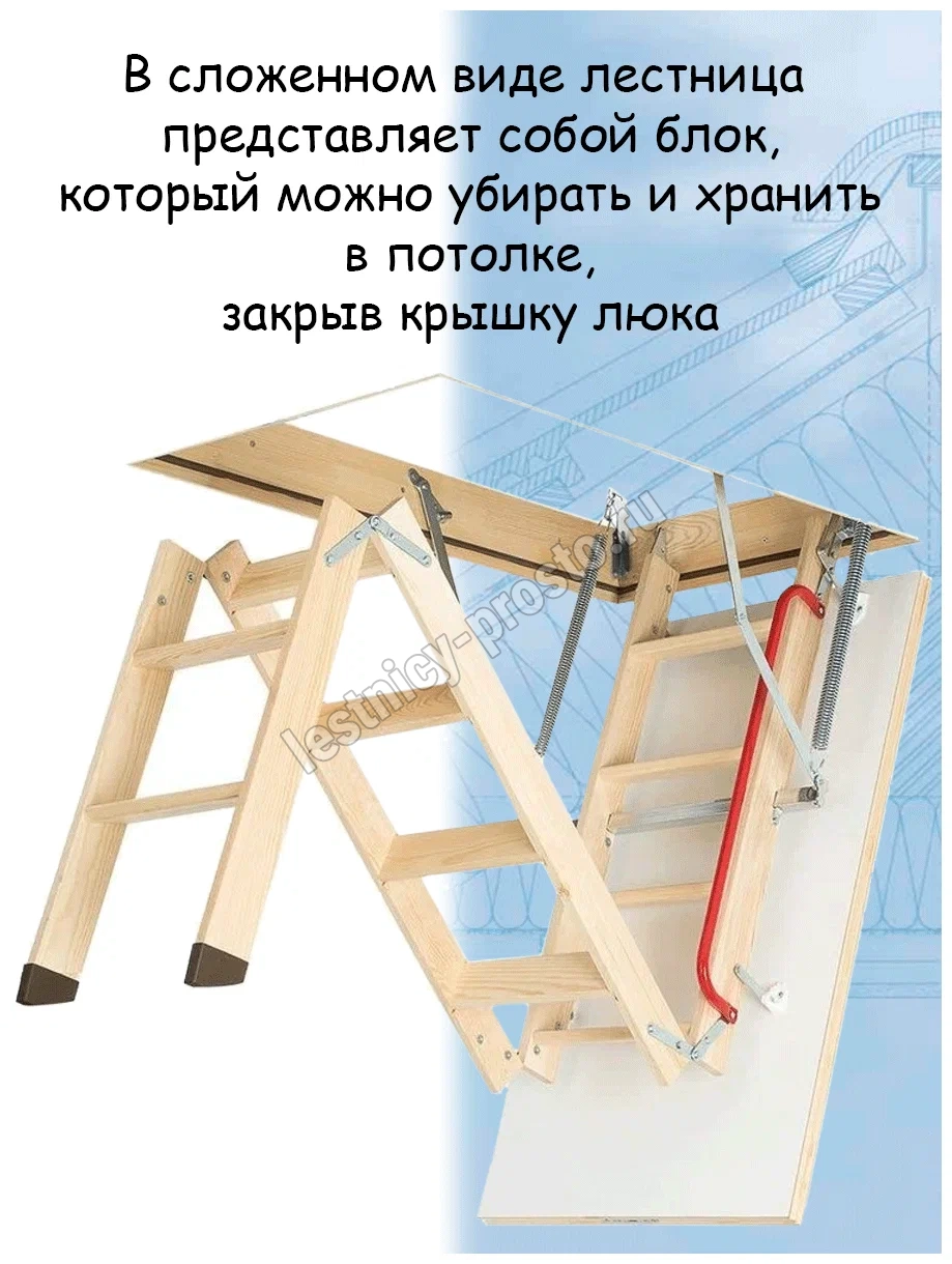 Чердачная лестница LWK отличается простотой и удобством монтажа - со стороны помещения, без подъема на чердак. Лестница устанавливается быстро, благодаря пластиковым креплениям-защелкам на крышке люка. Для большего удобства крышка люка на время монтажа лестницы снимается. Увеличенное расстояние между ступенями и крышкой люка повышает безопасность и комфорт использования. Монтажный комплект LXK приобретается отдельно.