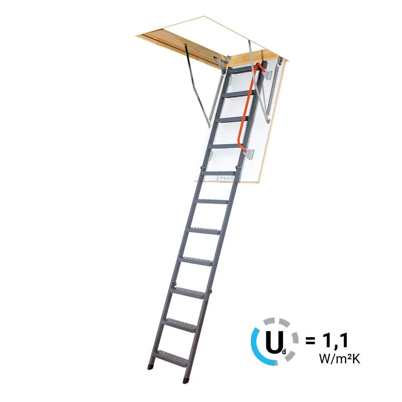Складная чердачная лестница LWL имеет повышенные теплоизоляционные параметры и высокий класс герметичности. Утеплённая крышка люка белого цвета. Лестница оборудована специальным механизмом LXM-3 и крючком на нижней ступени марша для стержня, которые в комплексе обеспечивают лёгкость и плавность открывания и закрывания лестницы. Снабжена дополнительным поручнем для безопасного подъёма.