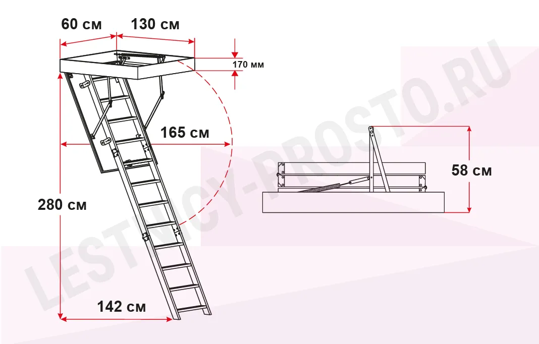Высоту лестницы можно увеличить с помощью дополнительной секции до 3350 мм. (секция покупается отдельно)