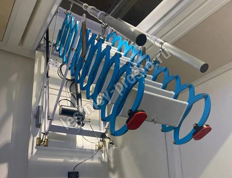 Чердачная лестница с электроприводом ZiKco сталь с поручнями