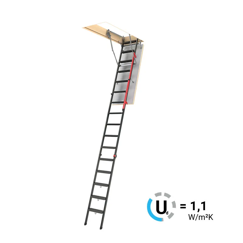 Складная алюминиевая тетива с качественным механизмом открытия-сворачивания позволяет с комфортом часто использовать лестницу.
