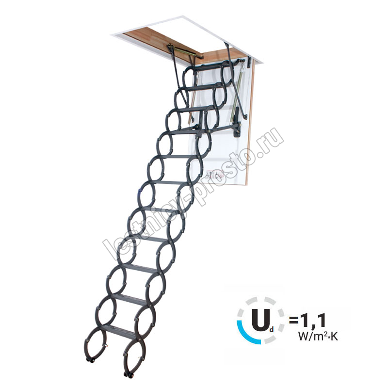 Чердачная термоизоляционная ножничная лестница FAKRO LST 70×80 см, h-280 см