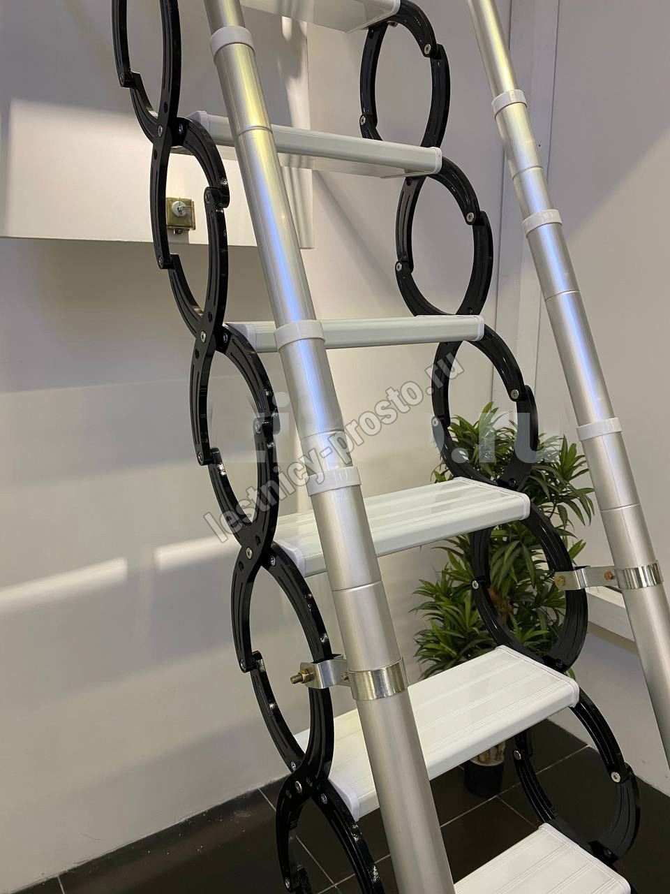 Боковые элементы лестницы – штампованный алюминий толщиной 11 мм!!! (черного цвета)