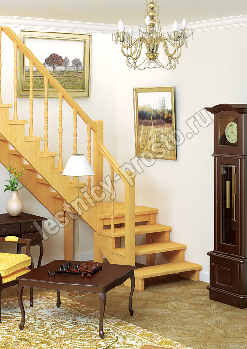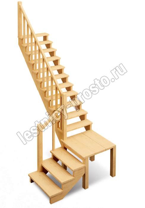Базовый комплект включает в себя деревянные элементы лестницы и ограждения без какого-либо покрытия. Лестница поставляется в разобранном виде, упакованная в ящик. Монтаж производится силами двух человек, в соответствии с указаниями, приведёнными в паспорте лестницы.