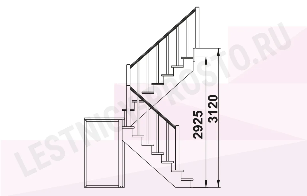 Ступени и поручень лестницы выполнены из дуба, остальные элементы из сосны. Возможно изготовление данной модели полностью из дуба.