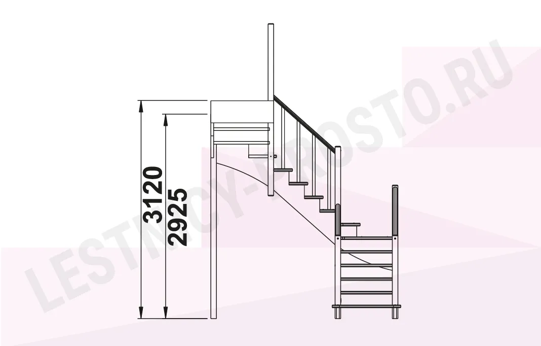 Ступени и поручень лестницы выполнены из дуба, остальные элементы из сосны.