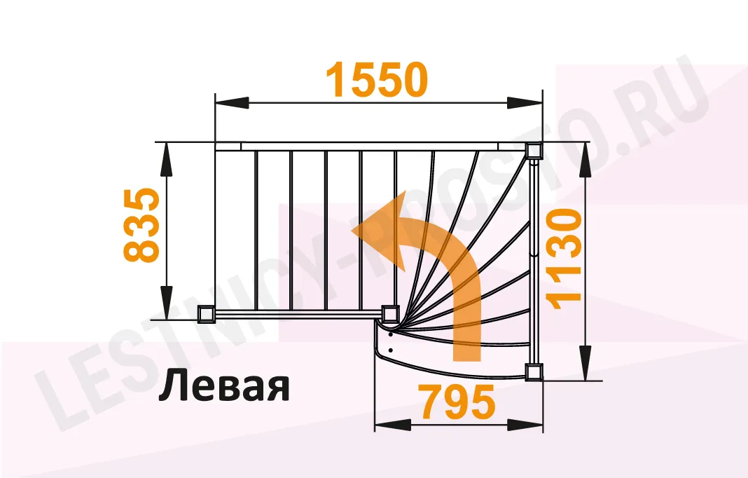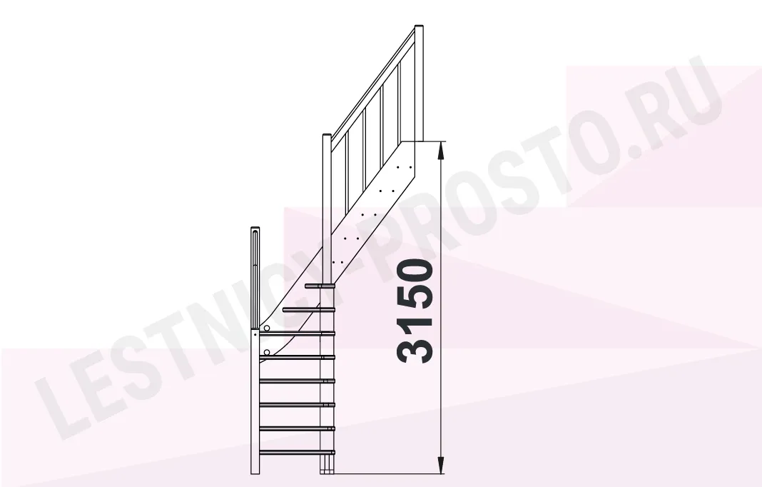 Схема лестницы ЛС-91М+2 с поворотом налево