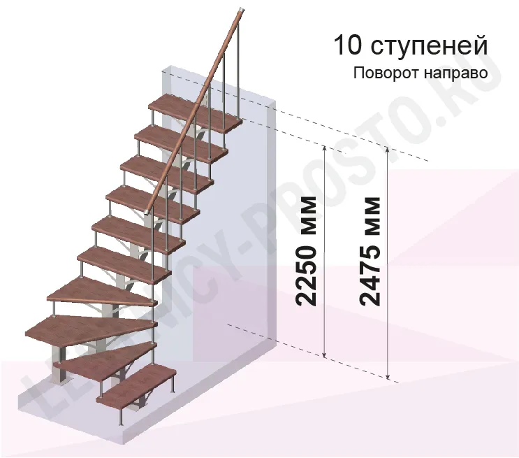 Высота лестницы 2250 - 2475 мм