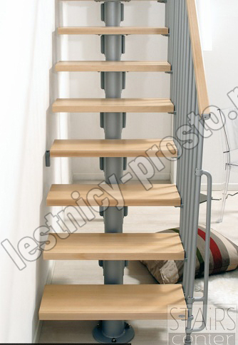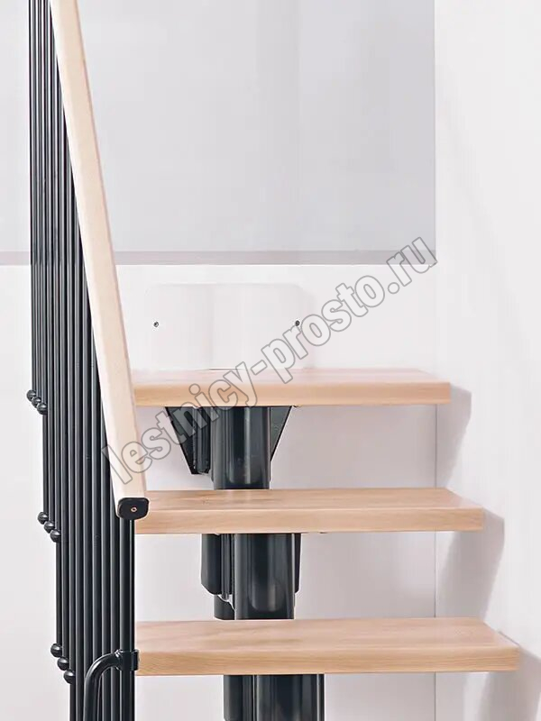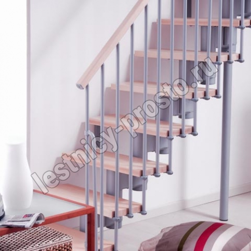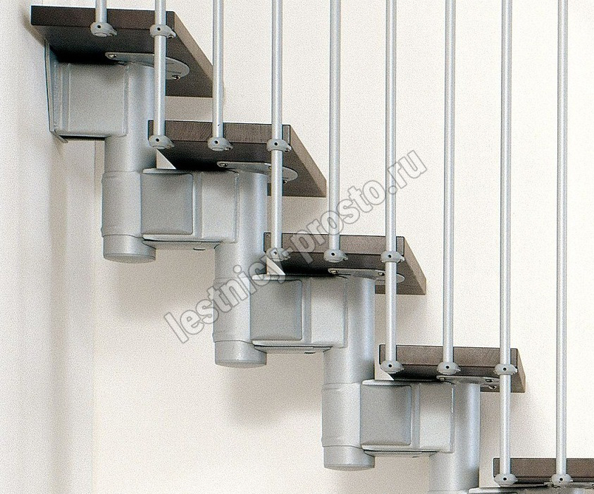Лестница на стальном модульном каркасе. При монтаже этой лестницы, возможно регулировать высоту и глубину шага, таким образом можно получить лестницу под высоты этажа в диапазоне 2250 - 3030 мм.