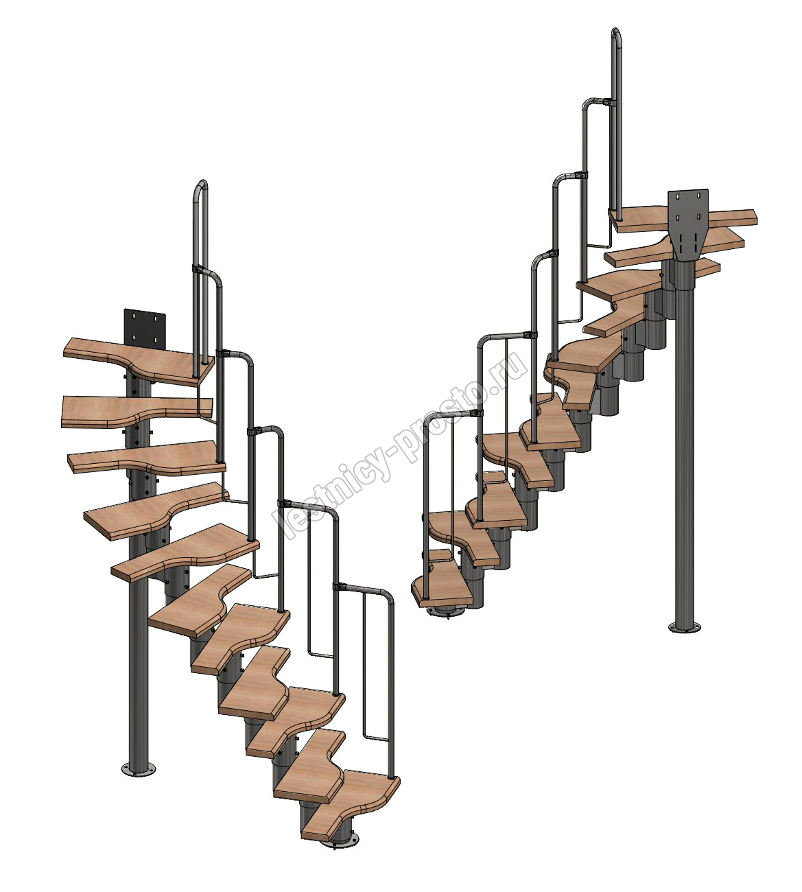 Лестница Prosto Urban Black гусиный шаг 700 мм, h198-288 см (11 ступеней), дуб