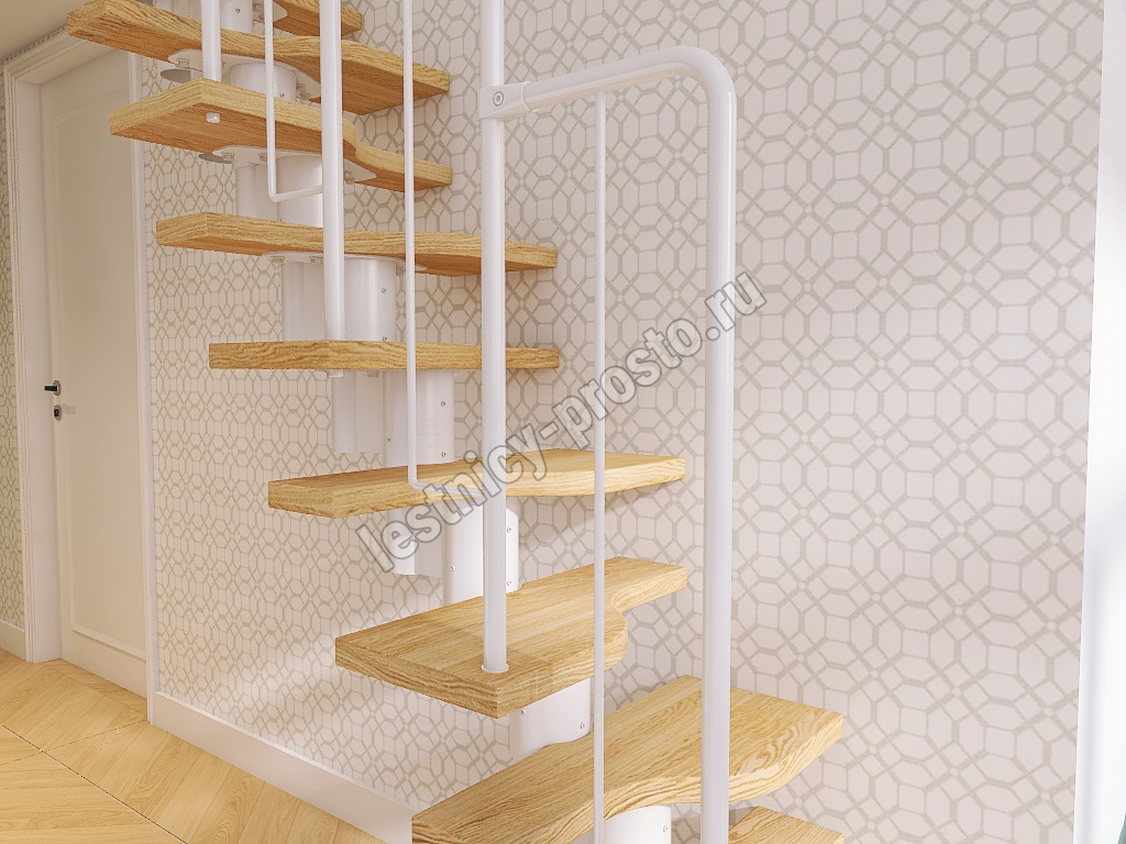 Лестница Prosto Urban White гусиный шаг 600 мм, h180-264 см (10 ступеней), дуб