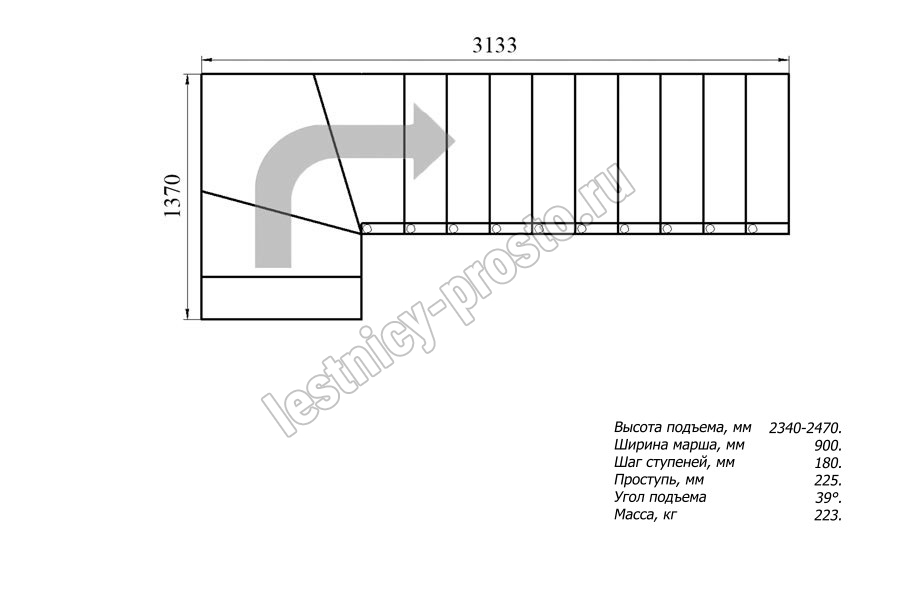 Модульная лестница Фаворит 180 2340-2470, Черный, Бук, Нержавеющая сталь