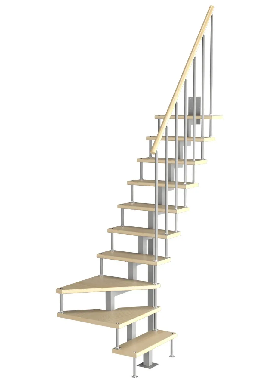Модульная малогабаритная лестница Компакт 2925-3150, Серый, Бук, Нержавеющая сталь