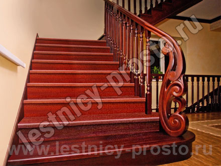 Деревянные ограждения, как правило, устанавливаются на ступени. Столбы крепятся в пол или в ступени прочными металлическими шпильками. Деревянные балясины сажаются на шканты с клеем. Редко используется боковое крепление деревянного ограждения. Для этого варианта требуются более длинные балясины, которые крепятся в торец лестничных маршей.