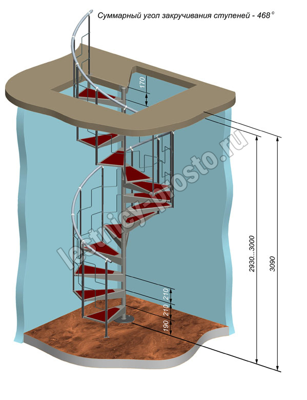 Высота подъема от пола нижнего этажа до пола верхнего: 3210 мм