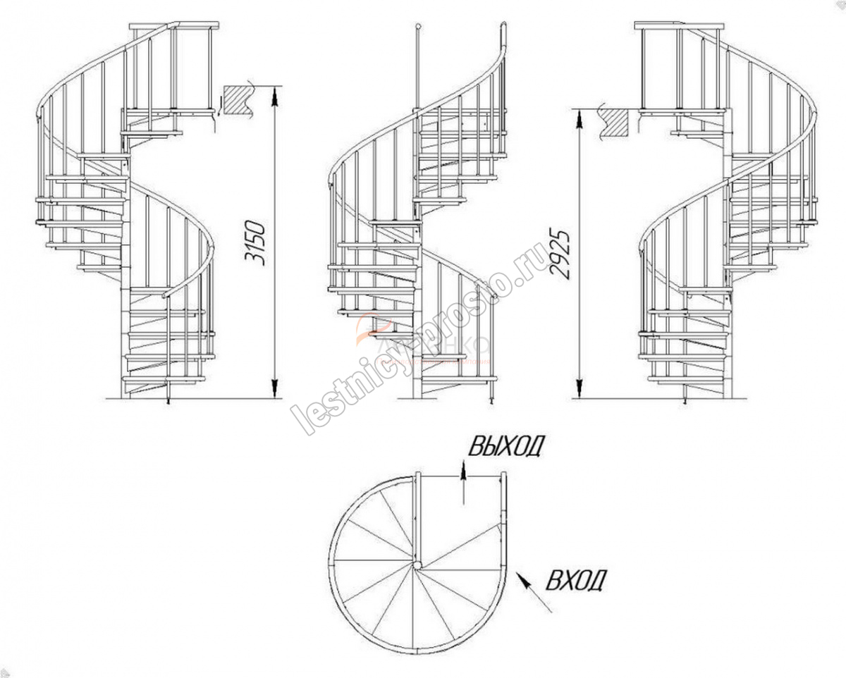 Винтовая лестница ЛЕС-1,8 высота 2925-3150, Серый, Лиственница