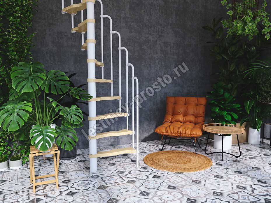 Винтовая лестница PROSTO MINI белая, 70×140 см, h322-345 см