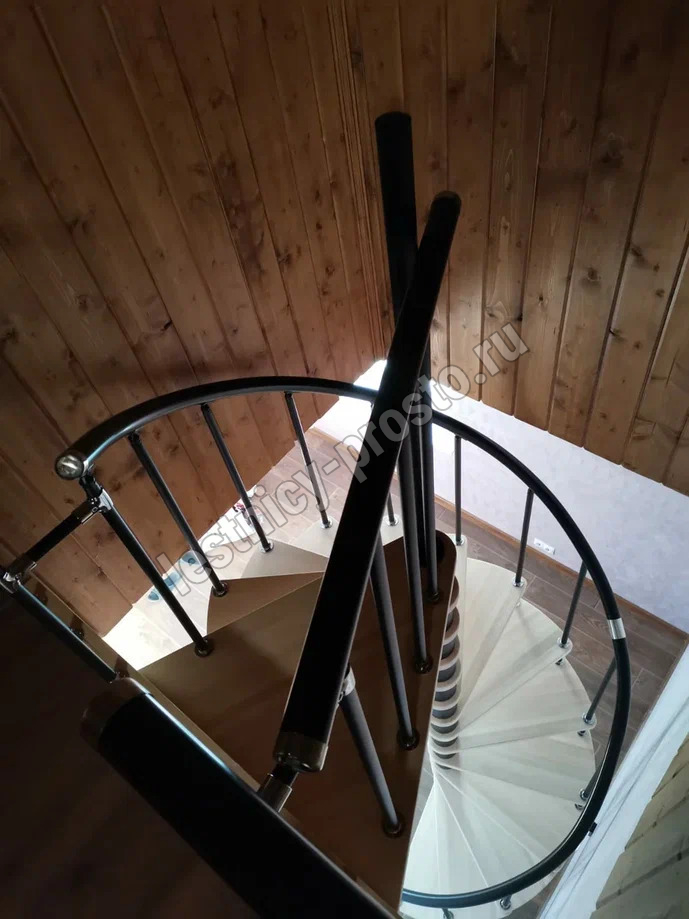 Стальные стойки Ф25мм (по одной на ступень) + ПВХ поручень Ф50.