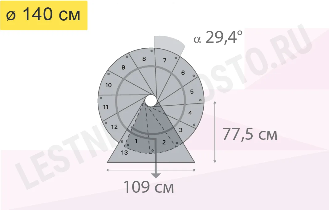 При монтаже лестницы, с помощью специальных пластиковых вставок, варьируется высота шага в пределах от 210 мм до 235 мм, за счёт чего общая высота лестницы может быть получена в пределах от 2530 мм до 3060 мм.
